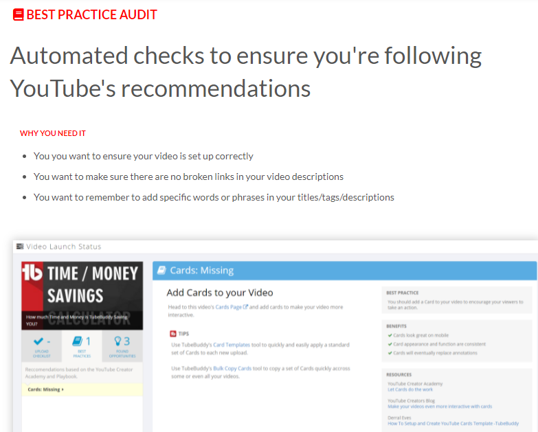In this case, TubeBuddy has come with a beneficial feature, Best Practice Audit. It allows you to know whether your video has any copyright issues or any misleading links in the description box.