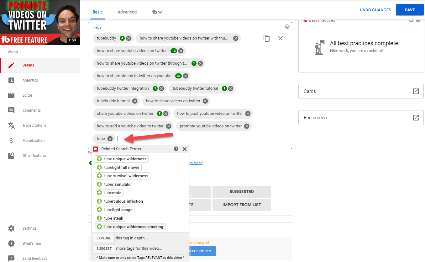 Yes, Tubebuddy comes with an advantageous feature, Insta-Suggest that allows you to optimize your video with real-time tags people are searching for them.