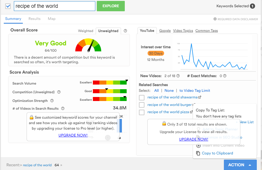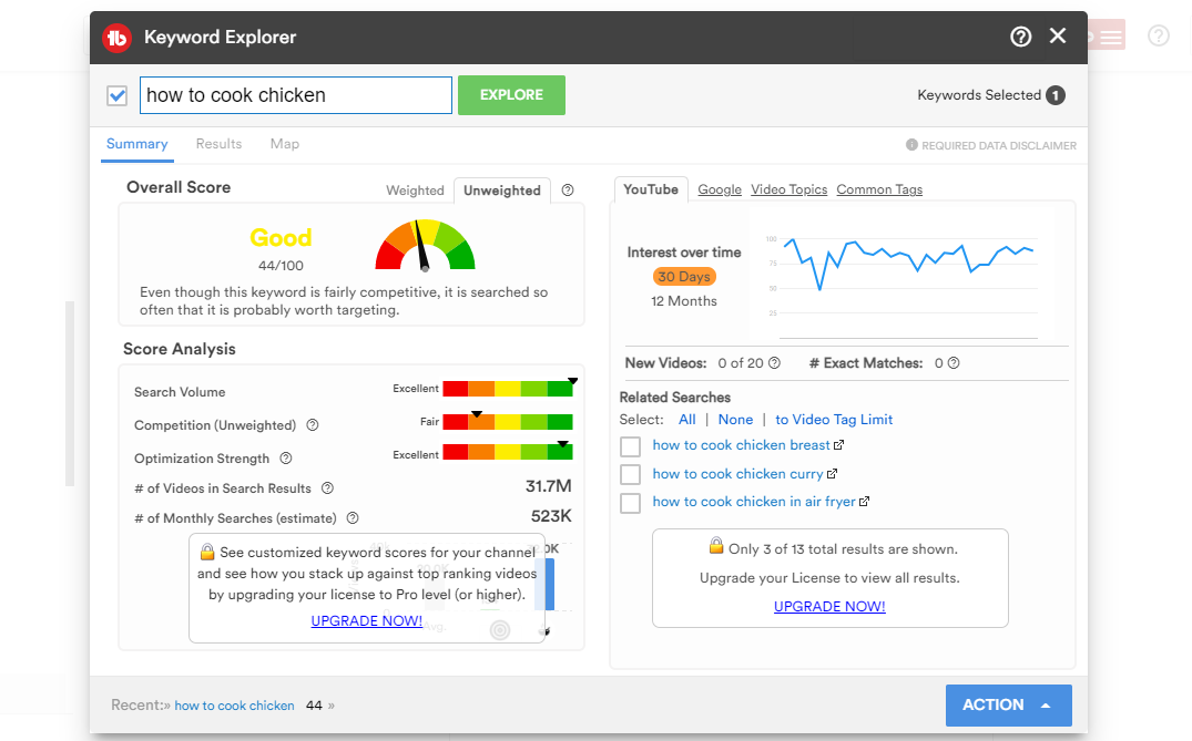If you find any keyword difficult to rank, you can go for other low-competitive keywords from TubeBuddy Search Explorer.