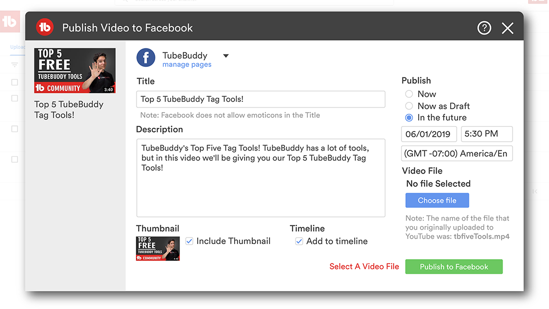 You don’t only want to grow on Youtube but Facebook also, right? TubeBuddy comes with a simple solution for the puzzle. Yes, you don’t need to upload and optimize your videos for both Youtube and Facebook.